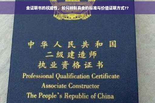摘要:金证明书是一种权威的价值证明方式,能够有效证明金的真实性。通过专业的检测和鉴定,金证明书能够提供关于金的成分、纯度、重量等详细信息,确保金的真实性和质量。其权威性和可信度得到了广泛认可,是购买和交易黄金时的可靠依据。