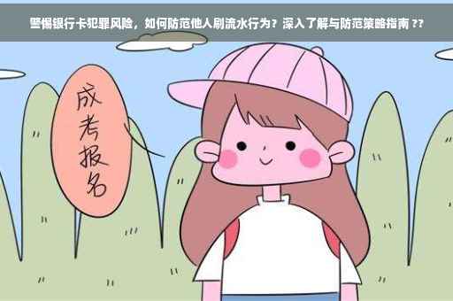 摘要:关于防范银行卡被他人用于刷流水、警惕犯罪风险的问题,需深入了解并采取措施。他人若持有你的银行卡,可能通过非法途径进行交易,涉及洗钱等犯罪活动。建议加强银行卡保管,设置复杂密码,定期查看交易记录,发现异常及时报警。提高警惕,防范未然,保护个人财产安全。