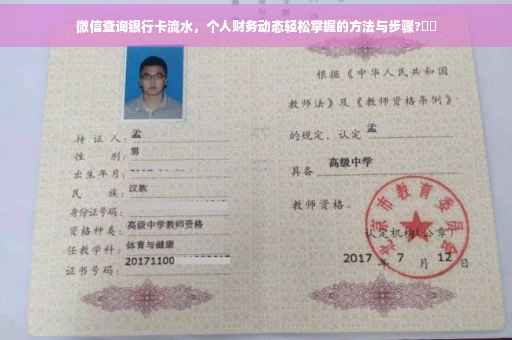 摘要:通过微信查询银行卡流水,可轻松掌握个人财务动态。查询方法简单便捷,只需在微信上关注相关银行公众号或绑定银行服务账号,即可随时随地查询银行卡流水。这一功能极大方便了个人财务管理,随时了解账户资金变动情况,有效保障个人财产安全。