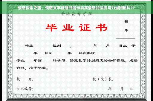 摘要:,,情感文字证明书,一本探索真实情感深度与力量的书籍。通过文字与图片的结合,展现情感的真实面貌,让读者感受到情感的力量。本书旨在帮助人们理解情感的重要性,并学会珍惜和表达真实的情感。通过情感文字书的呈现方式,让读者在探索情感的过程中,感受到生活的美好与温暖。