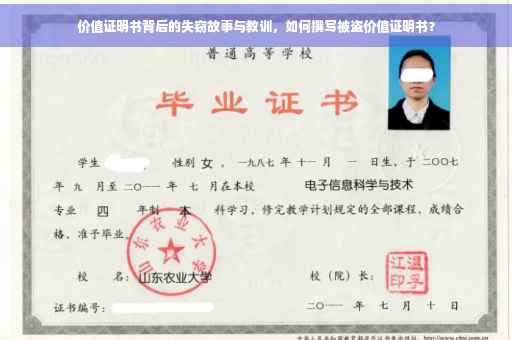 摘要:一份被盗价值证明书背后隐藏着一段故事和教训。在遭遇财物失窃后,为了证明损失的价值,需要撰写一份详细的价值证明书。在证明书中,应包含失窃物品的详细信息,如名称、数量、规格、购买时间、购买地点以及价值等。还应描述失窃的经过和教训,提醒人们注意防范类似事件再次发生。这份证明书不仅是损失的证据,更是一份警示,提醒我们保护个人财产安全的重要性。