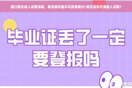 摘要:银行柜台收入证明是一份重要的文件,用于证明个人的经济状况。它揭示了个人收入的真实情况,包括收入金额、来源和稳定性等。有时可能存在一些问题,如证明过程繁琐或不透明等。针对这些问题,建议银行简化流程,提高透明度,并考虑引入数字化技术提高效率。个人在开具收入证明时也应确保信息的准确性和完整性。银行柜台收入证明是经济生活中的重要一环,需要得到重视和改进。