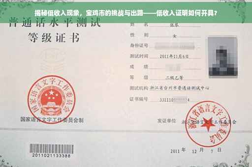 摘要:本文将揭示宝鸡市低收入现象的挑战,探讨如何为低收入家庭开具证明,并寻找解决之道。文章将聚焦于宝鸡市的现状,分析低收入群体的困境,并提出可能的出路和建议。希望通过深入探讨和研究,为改善低收入群体的生活状况提供有益的参考。也将介绍如何正确开具低收入证明,为需要帮助的人们提供指导。