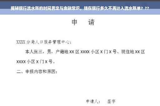 摘要:银行流水账单的时间界定因银行而异,通常没有固定的标准。一般而言,钱存入银行后,若长时间未产生交易或存取操作,该笔资金可能不再被计入流水账单。但具体多久不被视为流水,需结合不同银行的政策与规定。本文旨在揭秘银行流水账的时间界定,并普及相关金融常识。