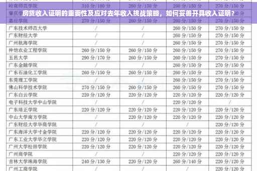 摘要:房贷收入证明在申请房贷时极为重要,它反映了申请人的还款能力。面对去年收入状况的挑战,应妥善应对以顺利开具收入证明。去年收入证明开具时,需如实填写实际收入情况,同时提供相应证明材料,如薪资流水、税单等。若收入不足,可积极与贷款银行沟通,寻求解决方案,如延长贷款期限、增加共同借款人等。合理应对收入挑战,确保房贷收入证明的真实性和有效性是关键。