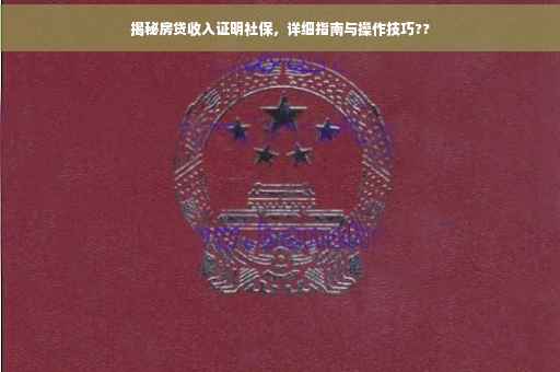 摘要:本文将为你揭示房贷收入证明社保的相关内容,包括其重要性、如何开具等。如果你正在准备申请房贷,了解这些内容将对你大有裨益。本文将详细介绍收入证明社保的开具流程,帮助你顺利申请房贷。阅读本文,你将知道关于房贷收入证明社保的一切。