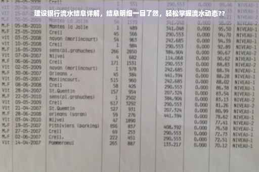 随着金融科技的飞速发展,越来越多的人开始注重个人财务的精细化管理,银行流水结息作为个人财务的重要组成部分,在理财规划、贷款申请等方面具有极其重要的意义,建设银行作为国内金融业界的佼佼者,其服务质量和金融产品深受用户的信赖和喜爱,本文将全面解析建设银行流水结息的相关信息,帮助用户轻松查看结息明细,实现个人财务的精准管理。