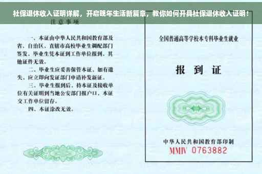 随着社会的进步和经济的蓬勃发展,人们对退休生活的关注度日益提高,社保退休收入证明作为退休后生活的重要支撑,对于保障退休人员的基本生活需求起着至关重要的作用,本文将全面解析社保退休收入证明的相关知识,帮助广大退休人员更好地了解自己的权益,为晚年生活提供坚实的保障。