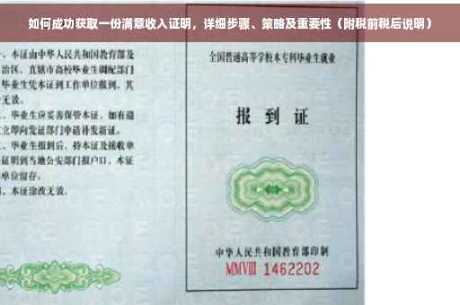 摘要:,,本文将探讨收入证明的重要性以及如何成功获取一份满意的收入证明。文章将介绍收入证明在日常生活和工作中的关键作用,包括申请贷款、租房以及职业晋升等方面。文章还将提供获取收入证明的详细步骤和策略,包括联系雇主、准备相关材料以及注意事项等。文章还将解答收入证明是否需要写明税前税后的问题。通过本文,读者可以更好地了解和管理自己的财务状况。
