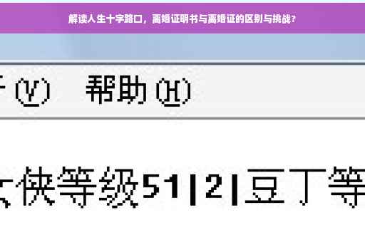 摘要:离婚证明书和离婚证是不同的概念。离婚证明书是一份证明婚姻关系已经解除的官方文件,而离婚证则是证明离婚手续已经完成的一种证件。解读人生十字路口的决策与挑战,离婚是一个重要的决策,需要慎重考虑和面对挑战。离婚过程中需要注意财产分割、子女抚养等问题,同时也需要面对心理和情感上的挑战。离婚证明书可以作为离婚过程中的重要证据,帮助当事人维护自身权益。