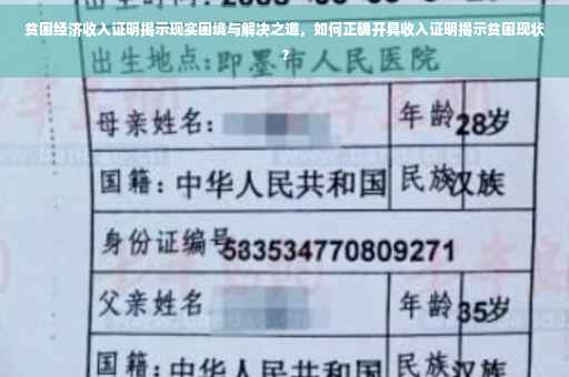 在当下社会,贫困依然是一个严峻的问题,许多家庭和个人因经济收入较低而陷入困境,贫困经济收入证明作为反映这一现实状况的重要文件,对于个人在申请资助、贷款等方面具有关键作用,本文将围绕贫困经济收入证明展开讨论,深入揭示贫困背后的原因,分析其对个人和家庭产生的深远影响,并探索可能的解决策略。