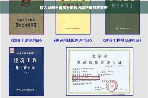摘要:收入证明不肯多开的问题背后涉及多种原因,如个人信用评估、公司政策限制等。为解决这一问题,可采取以下措施:首先了解拒绝原因,沟通协商解决方案;若因信用评估不足,可提升个人信用记录;如涉及公司政策,可向上级部门反映情况并寻求协助。建议个人保持诚信记录,提高信用度,有助于顺利获取收入证明。