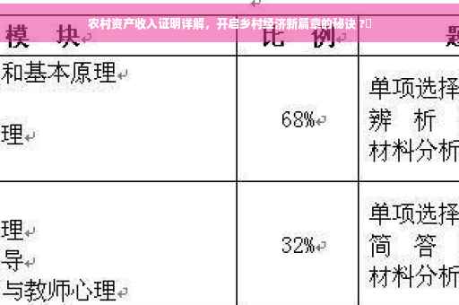 农村资产收入证明不仅是反映农村经济发展成果的重要文件,更是推动农村资源整合、增加农民收入、促进乡村振兴的有力工具,面对当前的挑战,我们需要完善相关制度、加强信息对称、提高法律意识,以推动农村资产收入证明的健康发展。