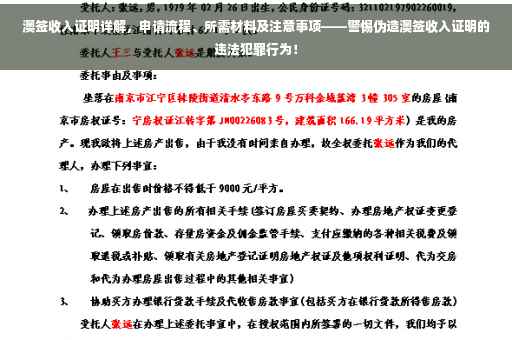 摘要:关于澳签收入证明,其申请流程包括准备相关材料、递交申请和等待审核等步骤。所需材料包括收入证明、护照、签证申请表等。在申请过程中,注意事项包括避免伪造收入证明等违法犯罪行为。澳签收入证明伪造是违法行为,需警惕并避免。