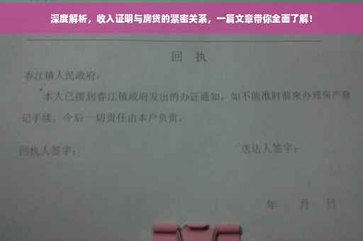 在现代社会,购房已成为许多人生活中的重要事件,对于大多数人来说,房贷是实现购房梦想的主要途径,而在申请房贷的过程中,收入证明是至关重要的一环,本文将详细介绍收入证明与房贷之间的关系,帮助大家更好地了解这一过程中的注意事项和常见问题。