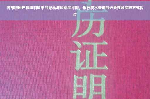 近年来,随着中国社会救助制度的不断完善,城市特困户问题逐渐受到广泛关注,对于城市特困户是否需要查银行流水这一问题,社会各界产生了不同的看法和争议,本文将围绕这一主题展开讨论,旨在探讨在保障个人隐私与提高救助制度透明度之间如何寻求平衡。