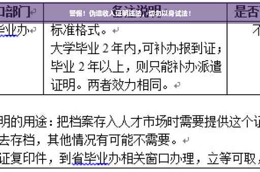 2、违反法律法规:伪造收入证明涉嫌伪造公文、印章等违法行为,一旦查实,将面临法律的制裁,轻则罚款、重则判刑。