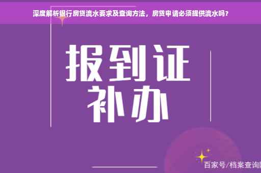 摘要:银行房贷必须有流水,这是银行评估借款人还款能力的重要依据。文章深度解析了银行房贷为何需要流水,并介绍了如何查询流水记录。通过查询流水,银行能够确认借款人的收入状况,从而决定是否给予贷款。申请房贷前,借款人需提前了解并准备好相关流水记录。