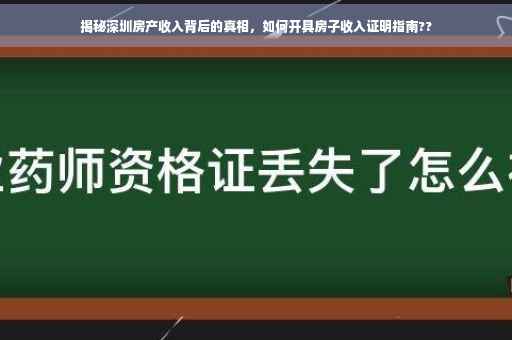 摘要:本文将介绍深圳房子收入证明的重要性及其背后的真相。通过揭秘房产收入的真相,让读者了解如何获取深圳房子收入证明,包括具体的步骤和注意事项。本文将提供有关房产收入的实用信息,帮助读者更好地了解房产投资的收益和收入证明的重要性。