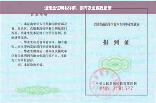 摘要:本文将详细介绍退定金证明书的相关内容,这是一份关于退还定金的重要文件。本文将指导读者如何撰写退定金证明书,包括证明书的格式、内容要点以及注意事项等。通过阅读本文,读者可以了解到如何正确有效地编写退定金证明书,以保障自身权益。