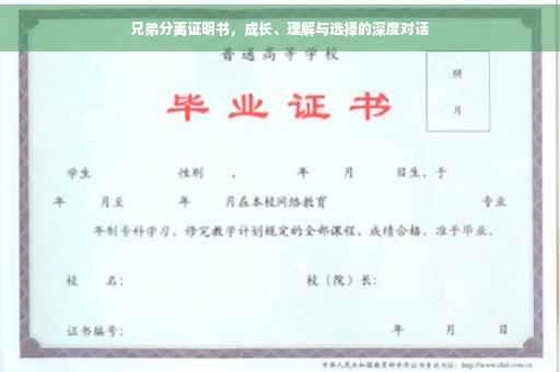 这份证明书不仅记录了他们的成长历程、共同度过的时光,还寄托了彼此之间的祝福和期望,它见证了他们的成长、相互理解和勇敢选择,也让他们更加珍惜彼此之间的情谊,尽管兄弟分离,但他们的心始终紧密相连,这份“兄弟分离证明书”是对过去美好时光的怀念,也是对未来的期待和祝福,愿他们在成长的道路上,不忘初心,珍惜彼此,携手前行。