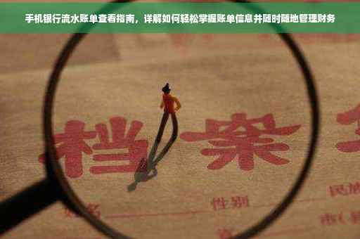 本文通过详细的步骤和注意事项,介绍了如何在手机银行中查看流水账单,掌握这一技能,将帮助您轻松管理财务,随时随地了解账户情况,在使用过程中,如遇任何问题,请及时联系银行客服,为了确保账户安全,请务必注意保护个人隐私,定期检查流水账单,确保账目的准确性。
