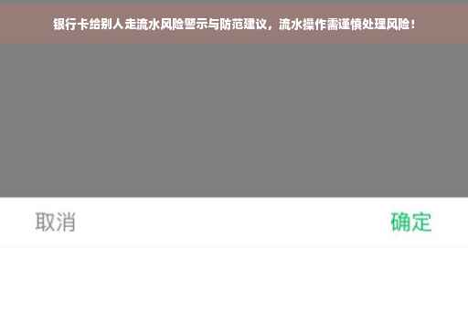 在当前社会,随着金融科技的快速发展,银行卡已成为我们日常生活中不可或缺的支付工具,一些人可能会遇到这样的情况:有人希望你的银行卡参与“走流水”,也就是通过银行卡进行资金往来操作,银行卡给别人走流水究竟存在哪些风险?我们又该如何防范呢?本文将从风险警示和防范建议两个方面进行深入探讨。