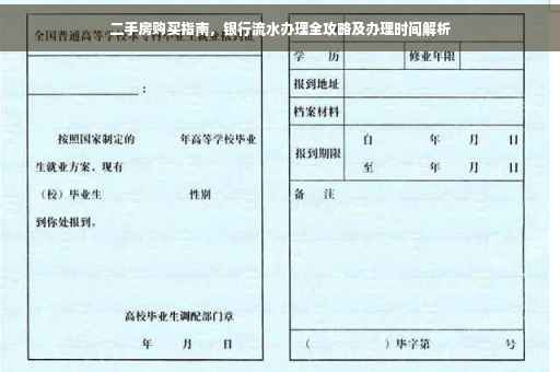 摘要:本文是关于二手房购买指南及银行流水办理全攻略的简要介绍。文章指出在购买二手房过程中,办理银行流水是重要的环节之一。文章将详细说明办理银行流水所需的时间及注意事项,以帮助购房者顺利完成二手房交易。
