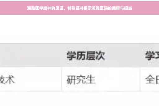 在浩瀚的历史长河中,湘雅医学院以其卓越的学术声誉和独特的医学精神,屹立于我国医学界的高峰,我有幸获得了一份湘雅医学院颁发的特殊证书,这不仅是对我个人的肯定,更是湘雅医学精神的传承与发扬,在此,我愿与大家分享这份荣誉,共同感受湘雅医学的深厚底蕴。