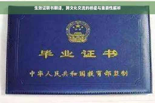 在全球化的今天,跨文化交流变得越来越重要,语言作为文化的载体,成为了连接不同国家、不同民族的桥梁,生效证明书翻译在跨文化交流中扮演着举足轻重的角色,本文将探讨生效证明书翻译的意义、过程、难点及其解决方案,以及在实际应用中的案例,旨在强调其在跨文化交流中的重要性。