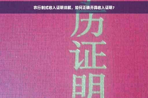 在当今社会,随着经济的发展和就业市场的繁荣,越来越多的人开始关注自己的收入证明问题,特别是在办理贷款、信用卡等金融业务时,收入证明成为了必不可少的一项材料,农行制式收入证明是其中的一种,本文将对农行制式收入证明进行详细介绍,帮助大家了解其具体内容和办理流程。