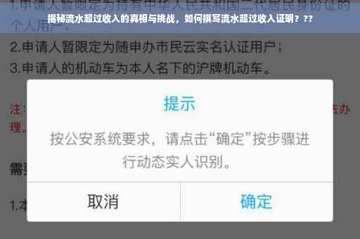 摘要:本文将揭示流水超过收入的真相与挑战。流水超过收入现象背后可能隐藏着多种原因,如消费观念变化、投资失误等。面对这种情况,个人和企业需认真分析原因并采取相应措施。本文将介绍如何撰写流水超过收入证明,包括详细说明收入与支出情况、提供证明材料等要点。帮助读者更好地应对财务问题,实现财务稳健。