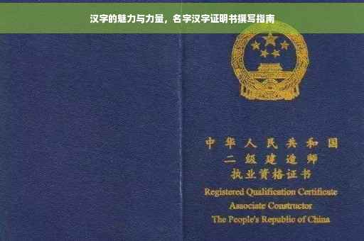 汉字作为中华文化的瑰宝,具有独特的魅力,名字作为汉字的重要组成部分,承载着丰富的文化内涵和历史底蕴,通过名字汉字证明书,我们可以更好地了解和传承汉字文化,让这一文化瑰宝得以发扬光大,让我们一起领略汉字的魅力与力量,共同传承和弘扬中华文化。