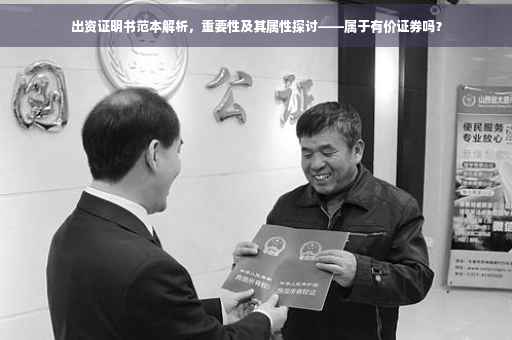 摘要:本文简要解析了出资证明书的范本及其重要性,探讨了出资证明书是否属于有价证券的问题。文章指出,出资证明书是证明投资者在公司中出资额度的法律文件,对于保障投资者权益和企业规范管理具有重要意义。虽然其性质不同于一般的有价证券,但在某些方面具备有价证券的特征。了解出资证明书的性质和作用,有助于投资者和企业更好地认识其重要性并正确运用。