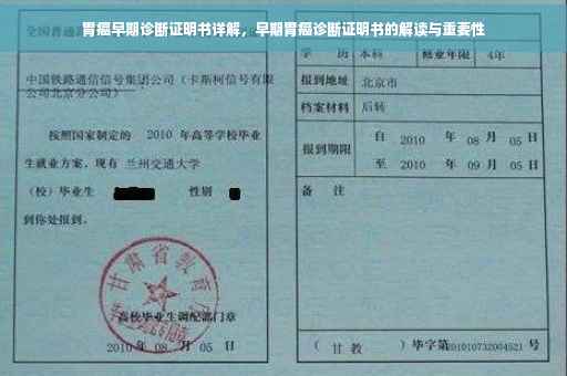 摘要:本摘要详细介绍了胃癌前期诊断证明书,着重解释了胃癌早期证明书的内容和作用。通过这份证明书,医生能够确认患者胃癌的初步诊断结果,为后续的治疗提供重要依据。本文旨在帮助公众了解胃癌早期诊断的重要性以及诊断证明书的作用,以期提高胃癌的早期发现率和治愈率。