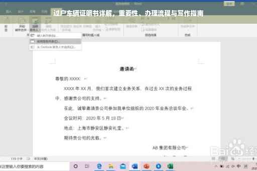 摘要:过户车辆证明书在车辆交易过程中具有重要地位,其作用是证明车辆所有权的合法转移。办理流程包括准备相关材料、前往车管所办理手续、提交申请并审核等步骤。撰写过户车辆证明书时需注明买卖双方信息、车辆信息、交易时间等关键内容,确保信息的真实性和准确性。本文详细解析了过户车辆证明书的办理流程及其写作要点,为读者提供了有益的指导。