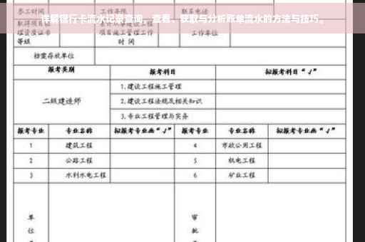 摘要:本文将详细介绍如何查询银行卡流水记录,包括查看、获取及分析账单流水的方法。通过本文,您将了解如何轻松查看银行卡的流水记录,包括线上和线下渠道,并学会分析账单流水,以便更好地管理财务和识别潜在的风险。