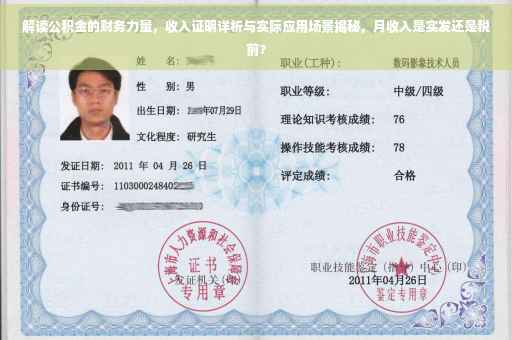 摘要:公积金收入证明揭示公积金的财务实力与应用场景,其中涉及的月收入需明确是实发还是税前。公积金作为一种重要的财务保障,对于个人和家庭具有重大意义。通过解读公积金收入证明,了解公积金的实际作用,如购房贷款、偿还债务等,以及其收入证明在财务评估中的重要作用。需明确收入证明中的月收入是实发还是税前,以便更准确地评估个人财务状况。