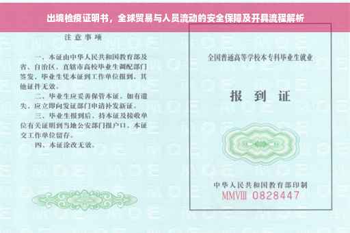 随着全球化进程的加速,国际间的贸易往来和人员流动日益频繁,在这样的背景下,出境检疫证明书成为了确保全球贸易与人员安全的重要一环,本文将详细介绍出境检疫证明书的含义、作用、办理流程及其重要性,帮助公众更好地了解这一关键文件。