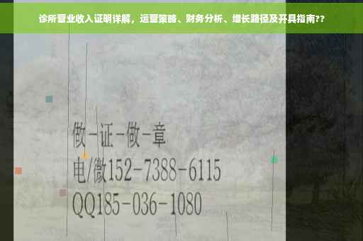 随着医疗行业的快速发展,诊所作为基层医疗服务的重要组成部分,其营业收入状况直接关系到诊所的运营状况和医疗服务质量,本文将围绕诊所营业收入证明这一主题,从运营策略、财务分析和增长路径三个方面展开详细探讨,旨在为诊所管理者提供有益的参考和启示。