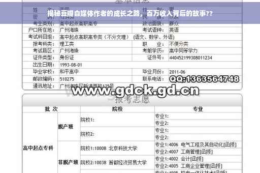 揭秘自媒体作者的成长之路:豆瓣百万收入背后的故事。自媒体已成为现代人的重要信息来源之一,许多作者通过努力实现了自己的梦想。他们通过创作优质内容吸引粉丝,积累影响力,最终获得可观的收入。豆瓣平台上一些自媒体作者更是凭借百万收入证明了自媒体的力量。这些作者的成长之路充满艰辛与汗水,他们是如何一步步走向成功的呢?让我们深入了解他们的创作历程和成功秘诀。