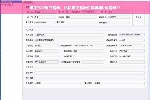 近年来,随着社会节奏加快和工作压力增大,越来越多的人出现记忆力下降的问题,有些人甚至出现了失忆症状,严重影响了日常生活和工作,本文将围绕年失忆证明书这一主题,探讨记忆丧失的原因、诊断方法、治疗方法以及预防措施,以期帮助广大读者更好地了解这一话题,并为自己和家人的健康保驾护航。