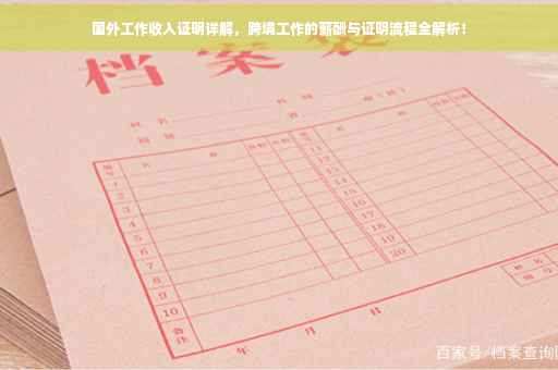 随着全球化的不断发展,越来越多的人选择到国外工作,寻求更广阔的发展空间和更高的收入,在国外工作期间,办理各类手续、证明时,收入证明是不可或缺的重要文件,本文将详细介绍国外工作收入证明的相关内容,帮助大家更好地了解办理流程和注意事项。