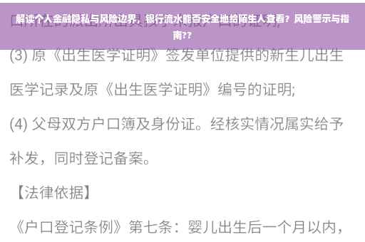随着金融行业的快速发展,我们的生活越来越离不开银行,银行流水作为记录个人金融交易的重要文件,其重要性日益凸显,面对日益复杂的社会环境和不断变化的金融生态,我们不禁要思考:银行流水是否可以给陌生人看?本文将围绕这一问题展开讨论,帮助大家更好地理解个人金融隐私与风险边界。