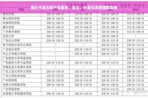 随着金融行业的快速发展,银行卡已成为我们日常生活中不可或缺的支付工具,在使用银行卡时,我们经常听到“流水账户”这个词,本文将为您详细解析银行卡流水账户的概念、计算方法及其重要性。