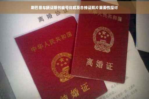 摘要:本文介绍了斯巴鲁车辆证明书编号的重要性,解析了斯巴鲁合格证的相关事项。证书编号是车辆身份的重要标识,用于验证车辆的合法性和身份真实性。文章还提到了斯巴鲁合格证照片的重要性,以确保车主获得正规的车辆证明文件。通过了解这些事项,车主可以更好地保护自己的权益,确保购买到真正的斯巴鲁车辆。