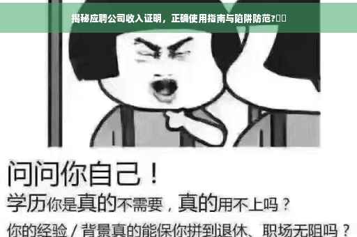 在求职过程中,许多公司都会要求应聘者提供收入证明,收入证明是证明个人收入状况的重要文件,对于求职、贷款、信用评估等方面具有关键作用,许多人对收入证明的具体作用、如何正确使用以及注意事项并不了解,导致在应聘过程中陷入误区,本文将详细解读应聘公司收入证明的作用、内容、正确使用方法以及注意事项,帮助读者更好地应对求职过程中的相关问题。