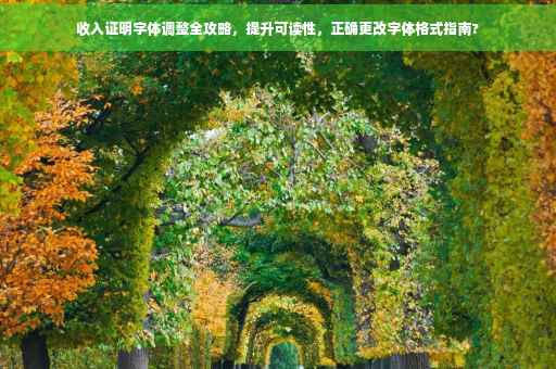 摘要:本指南介绍了如何调整收入证明的字体格式以增加可读性。通过更改字体大小、类型、行距等参数,使收入证明更加清晰易读。提供了具体的步骤和注意事项,帮助用户正确更改字体格式,确保收入证明的真实性和有效性。