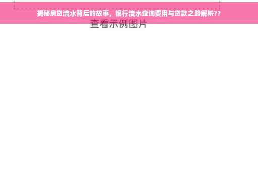 摘要:本文将揭示房贷流水的秘密,探究银行背后的故事,同时解析贷款过程中的关键步骤。关于在银行打印一年房贷流水所需费用,将在文中进行说明。本文旨在帮助读者更好地了解房贷流程,为贷款之路提供指引。