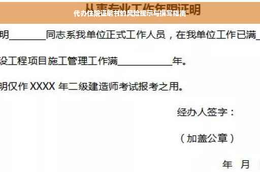 随着社会的快速发展,人们生活的节奏日益加快,有时候可能会遇到因种种原因无法亲自办理住院证明的情况,这时,一些人可能会考虑通过代办的方式来解决这个问题,代办住院证明书背后隐藏着许多风险和法律问题,本文将深入探讨代办住院证明书的隐患、法律边界以及相应的建议,以提醒广大读者谨慎对待此事。